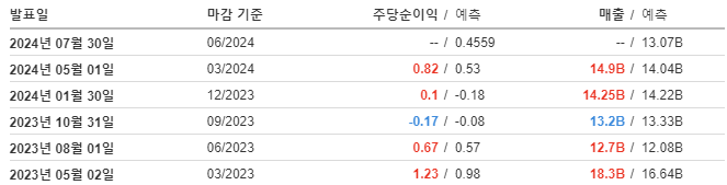 실적을 보더라도 23년 말 저점을 찍고 2024년은 주당 순이익과 매출이 예상치를 상회하고 있습니다.
