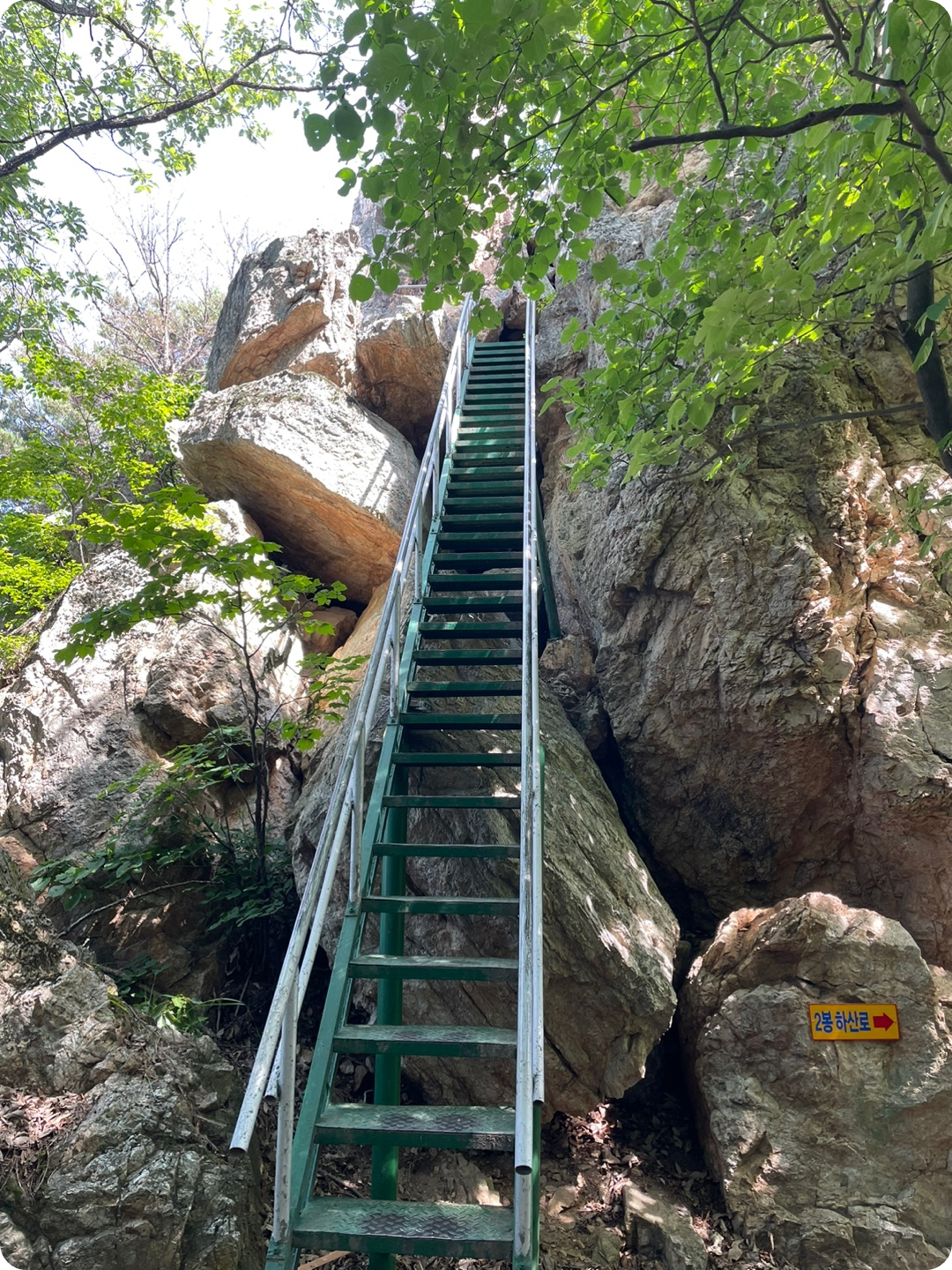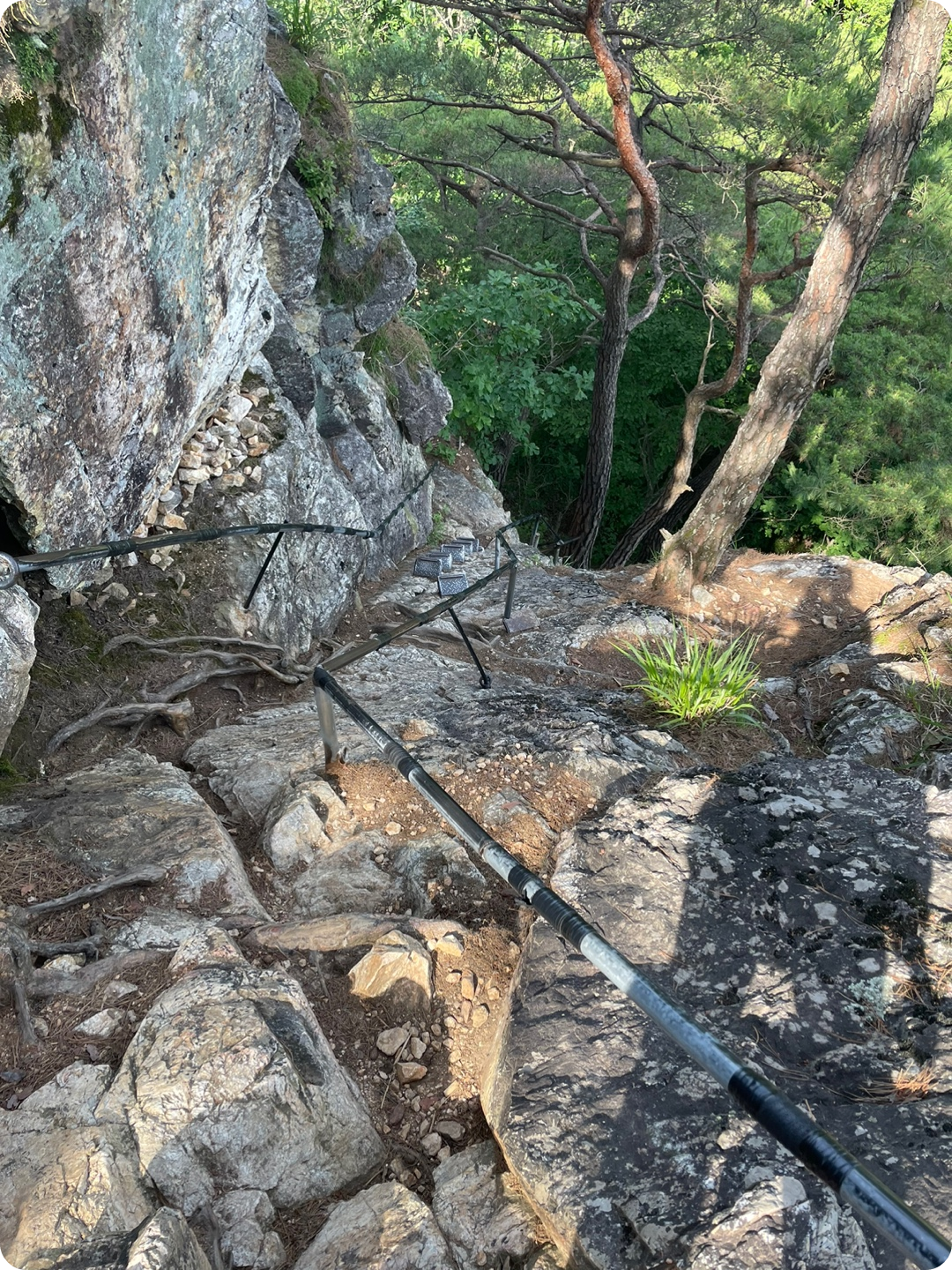 2봉 가는길인데, 실제로 보면 진짜 험해요. 딱, '발 헛딛는 순간 죽음뿐'이라는 생각이 듭니다. 뒤에서 오는 사람이 미끄러지면 나도 휩쓸려서 죽을 거같다는 생각도 들고, 다리에 힘 딱 주시고 천천히 내려가셔야 해요.