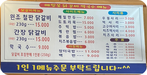 원조 철판 닭갈비(1인분 15000원)랑 막국수(9000원) 주문!