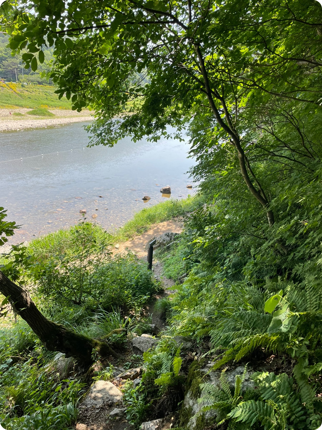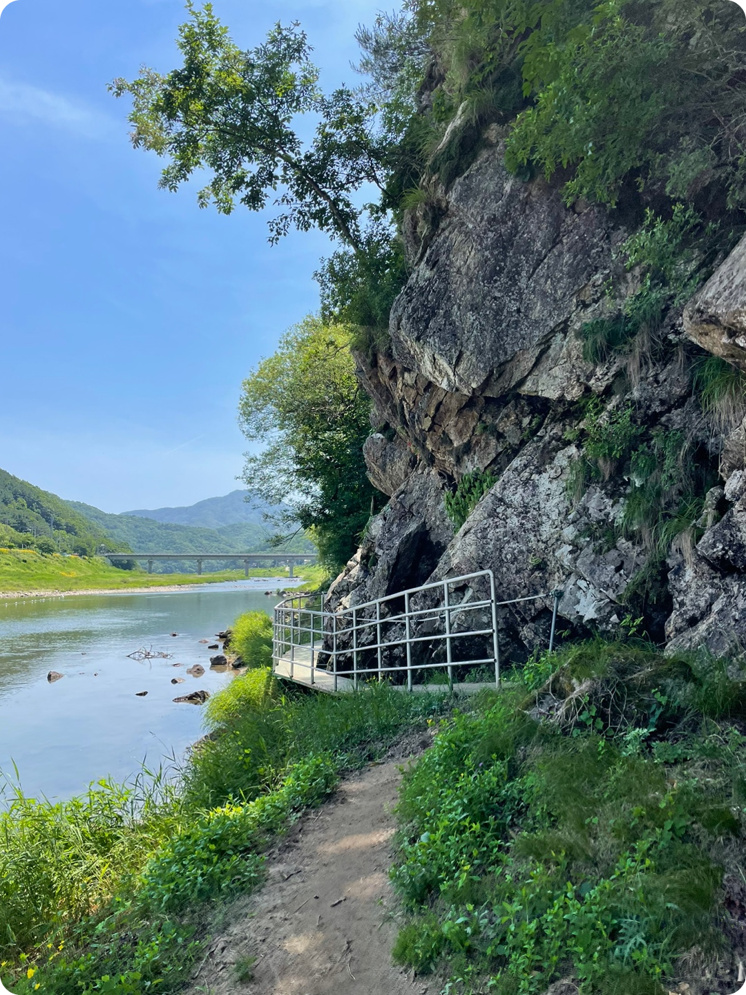 한 30분정도 내려오면 강이 보입니다. 거의 다 왔어요! 계속 돌길이기 때문에 정말 조심하셔야 해요. 은근 미끄럽고 흔들거리는 바위가 많아요. 강가로 도착하면 쭉 평지에요. 걷다보면 맨 처음 매표소로 돌아오게됩니다.