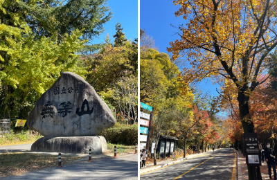 하늘이 엄청 파랗고 단풍이 예쁘게 물들었습니다. 날도 선선해서 등산하기 너무 좋았습니다.