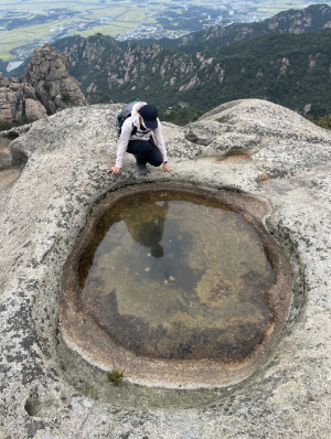 구정봉 사진 보시면 제 몸뚱이랑 비교해도 매우 큰 샘? 우물 정도의 사이즈였습니다.