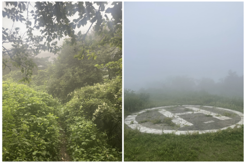 이 계단이 보이신다면 정상에 거의 다다른 것입니다. 저 계단이 끝이 없기는 한데, 계단 코스만 끝나고 한 5분 더 오르면 정상이 나옵니다. 막상 정상에 갔는데 풍경이 전혀 좋지가 않습니다. 그냥 정상석 세워져 있고 끝. 날씨도 썩 좋지 않아서 5분 정도 쉬고 바로 내려왔습니다. 내려올 때는 꼭 터널 입구 쪽으로 내려와야겠다 생각하고 내려와 봤는데, 정말 너무 코스가 좋았습니다. 꼭 터널 입구 쪽 등산로로 가세요!