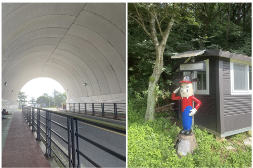 주차를 하고, 바로 앞에 등산 초입이 있길래 아무런 의심없이 들어갔습니다. 그런데 알고보니 이 길은 관리가 전혀 되지 않는 길이었습니다! 초입은 계단이 있어서 그럴싸하게 해 놓았는데 조금만 올라가셔도 싸한 느낌이 듭니다. 풀이 너무 많아서 이게 길인지 아닌지 구분도 되지 않습니다. 게다가 초입부터 뱀이 있더라고요^^.. 그때 알아차리고 내려왔어야 했는데, 카카오맵으로 보니 분명 여기가 길이 맞는데 싶어서 그냥 올라갔다가 정말 힘들었습니다. (자세한 입구 사진은 아래 등산 후기에 올려놓겠습니다) 무조건 주차하시고, 터널이 하나 보이는데 이 터널을 지나면 좌측에 병정 조형물이 있는 입구가 하나 보입니다. 꼭 여기로 올라가세요! 100m 정도 우회하는데 난이도는 제가 올라간 등산로보다 훨씬 쉬워요. 꼭꼭 터널 지나면 나오는 입구로 진입하세요!