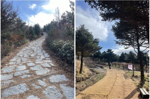 등산 소요시간은, 휴식 및 정상석에서 사진 대기 시간 포함 3시간정도 걸렸습니다. (휴식없이 올라가면 1.5~2시간도 충분히 가능할 것 같습니다.) 준비물은 등산화 (운동화 가능), 물 500ml 두개, 간단한 간식입니다. 등산 스틱도 선택사항입니다.