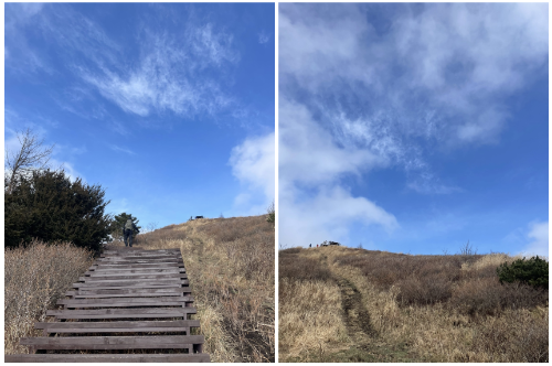 점점 주변에 그늘과 나무가 사라지고 하늘이 가까워집니다. 봄, 여름엔 괜찮겠지만 가을부터는 이 정도쯤 올라오면 바람도 많이 불고 체온이 떨어집니다. 얇은 긴팔이나 겉옷이 필요합니다. 혹시 모르니 장갑도 하나 챙기셔요.