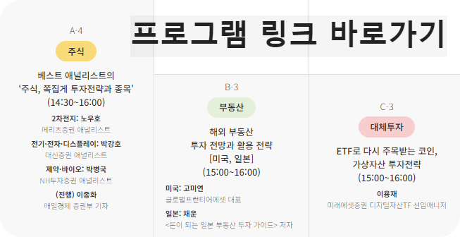 사전등록 바로가기 (링크) https://www.seoulmoneyshow.com/guide/02.php