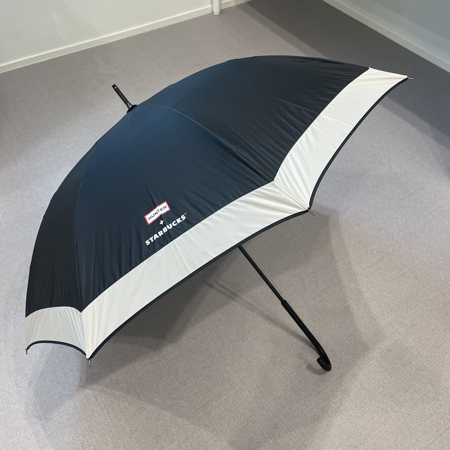 통상적인 장우산 길이에 블랙-베이지가 섞인 색이에요. 헌터 x 스타벅스 로고도 너무 귀여웠습니다.