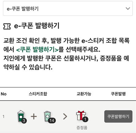이렇게 다 모으고 나서, 프리퀀시 화면 하단의 e-쿠폰 발행하기를 누릅니다. 그 다음 쿠폰발행하기 클릭!