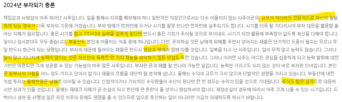 오늘은 2024 부자되기, 재물운이 궁금해서 운세를 봐보겠습니다. 2024 부자되기 클릭!