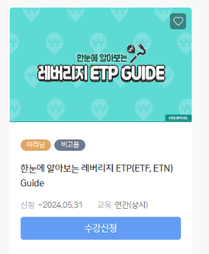 회원가입 후 이러닝에 들어가서 한눈에 알아보는 레버리지 ETP(ETF, ETN) 를 수강신청합니다.
